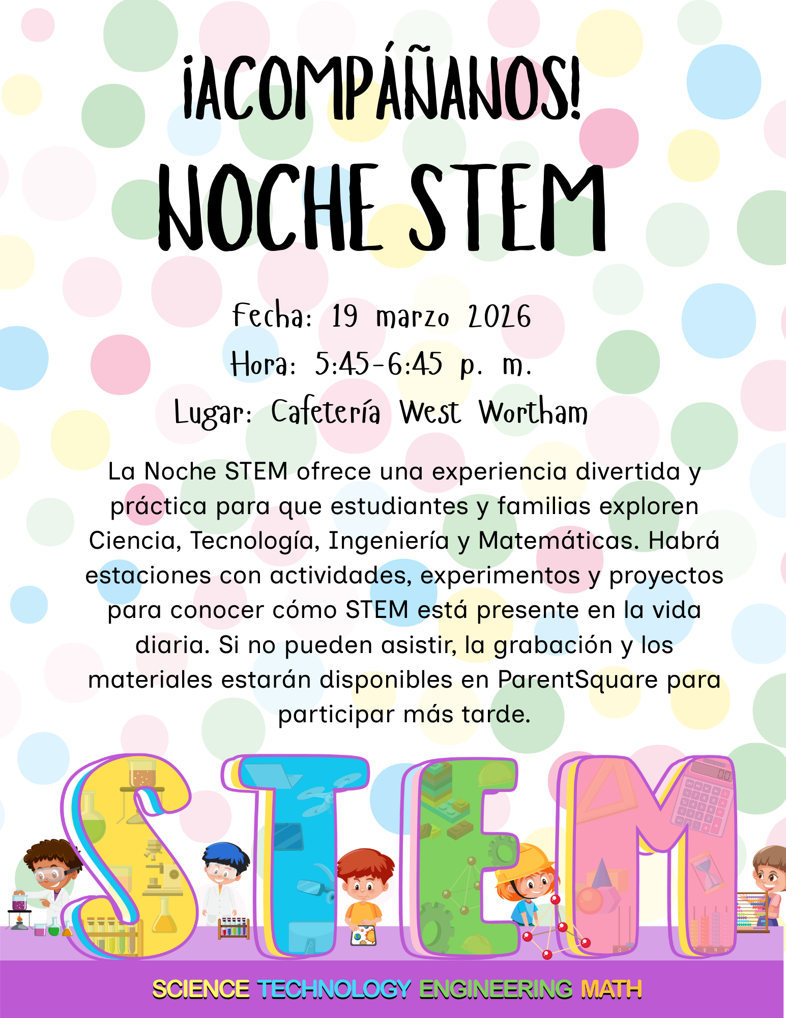🎉 **Join us for a hands-on, engaging evening** where you’ll have the opportunity to explore exciting STEM activities, discover resources for supporting your child's education, and connect with fellow families and educators.